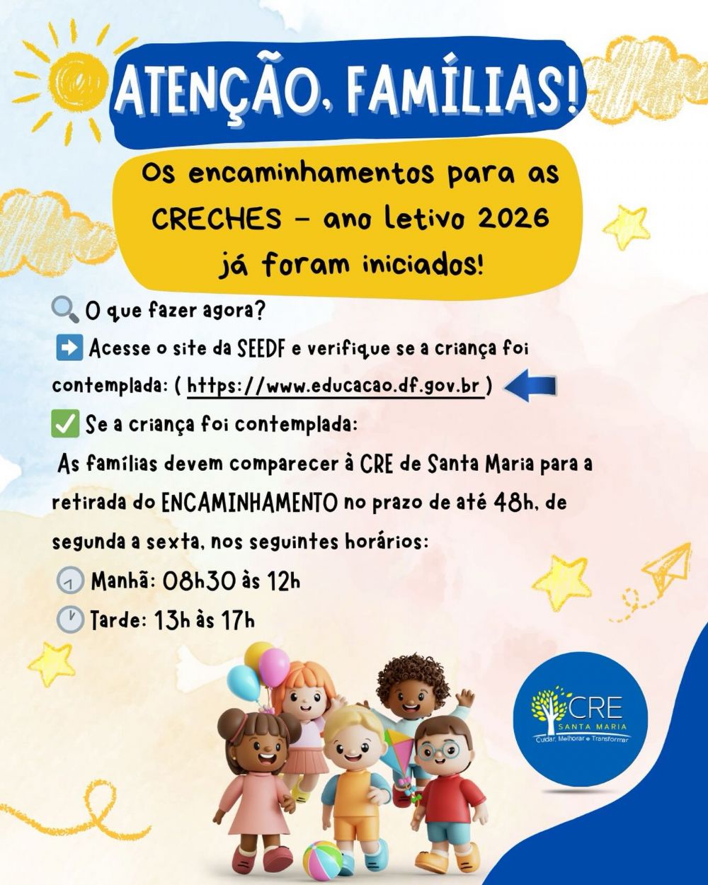 Encaminhamentos para creches da Regional de Ensino de Santa Maria são iniciados para o ano letivo de 2026