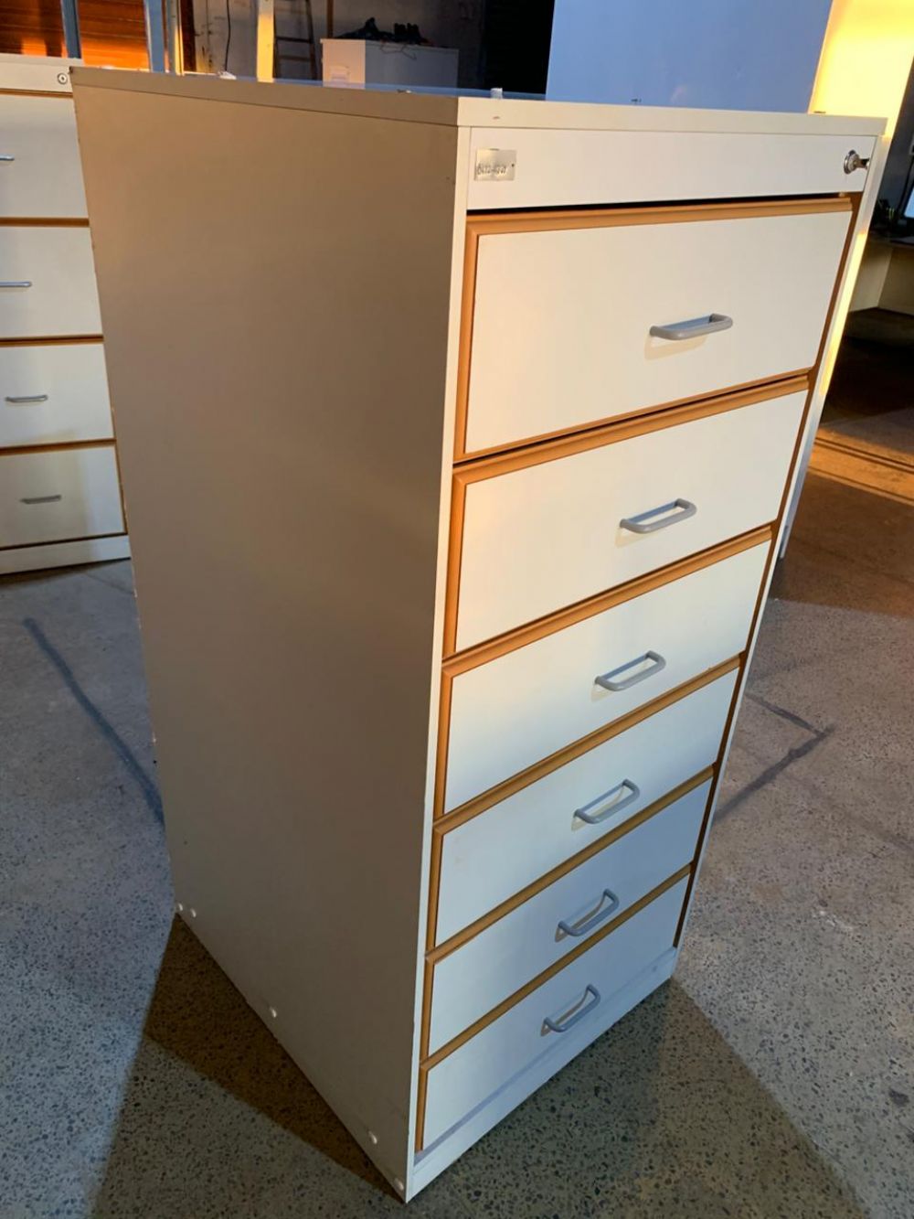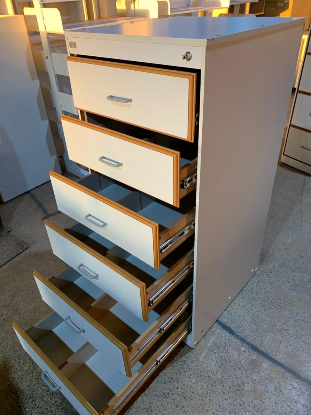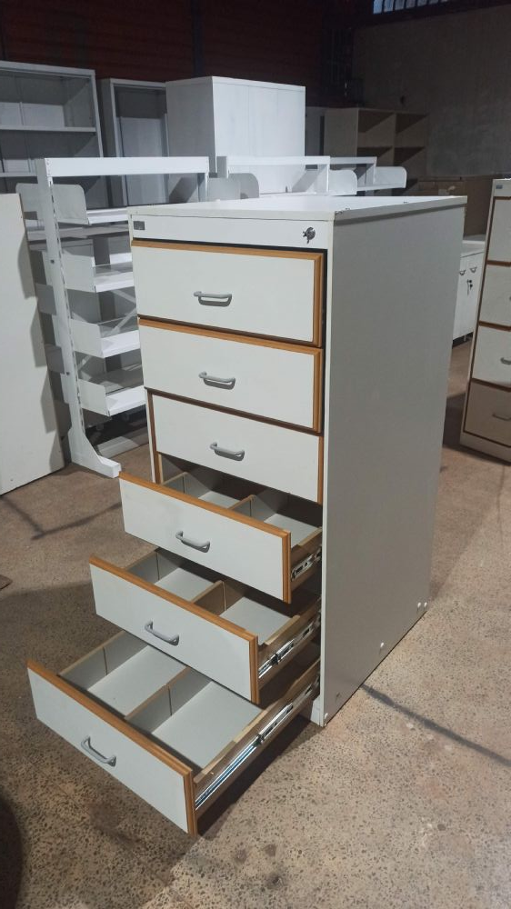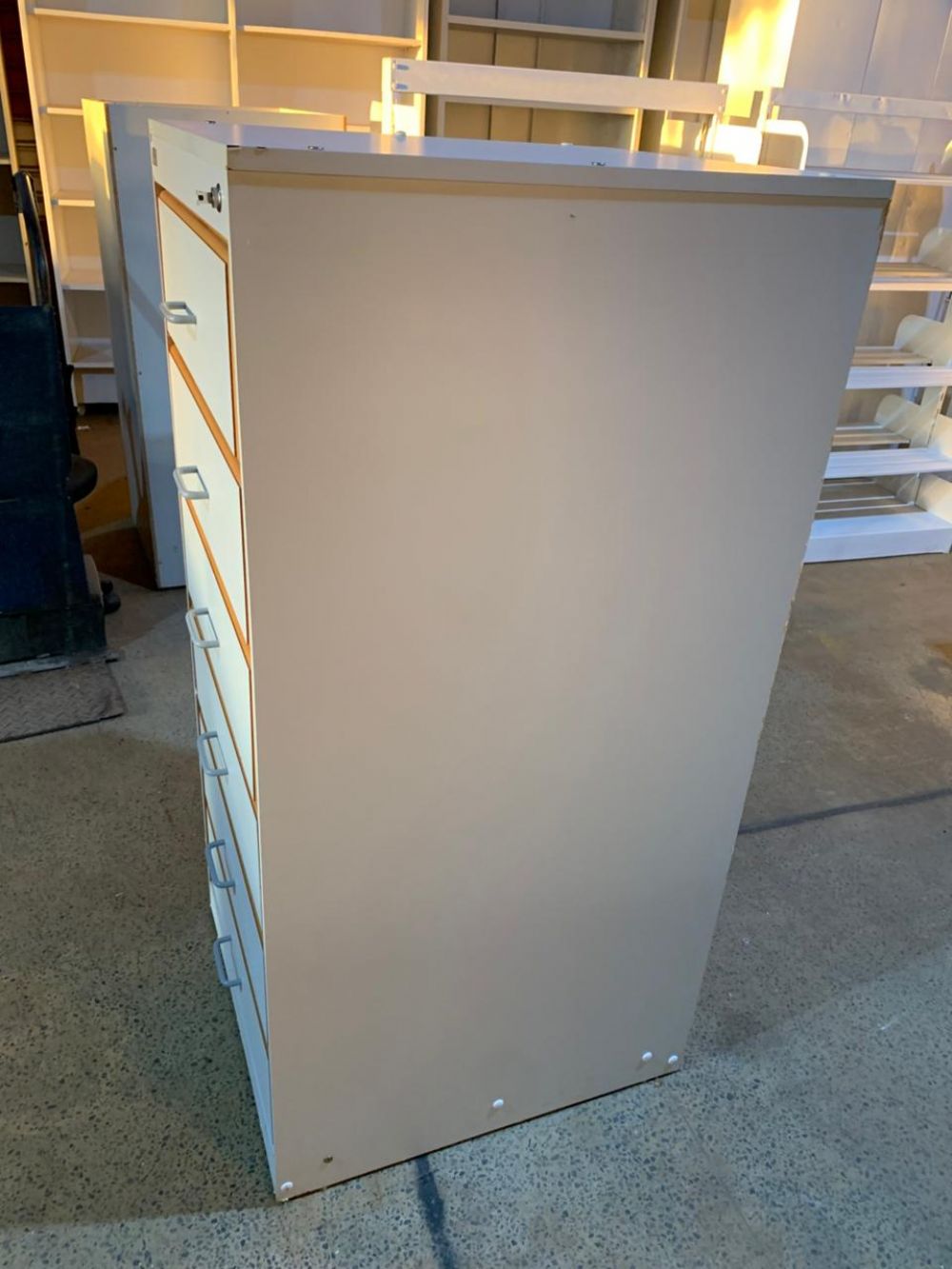 Cômoda de MDF ou armário multiuso, com 6 gavetas, em ótimo estado. Produtos usados.