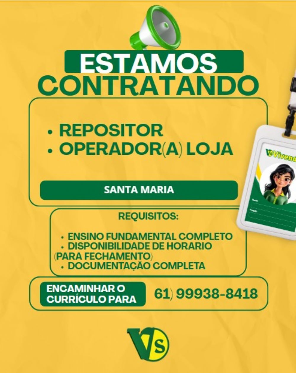 Supermercado Vivendas anuncia vagas de emprego para Operador(a) de Loja em Santa Maria