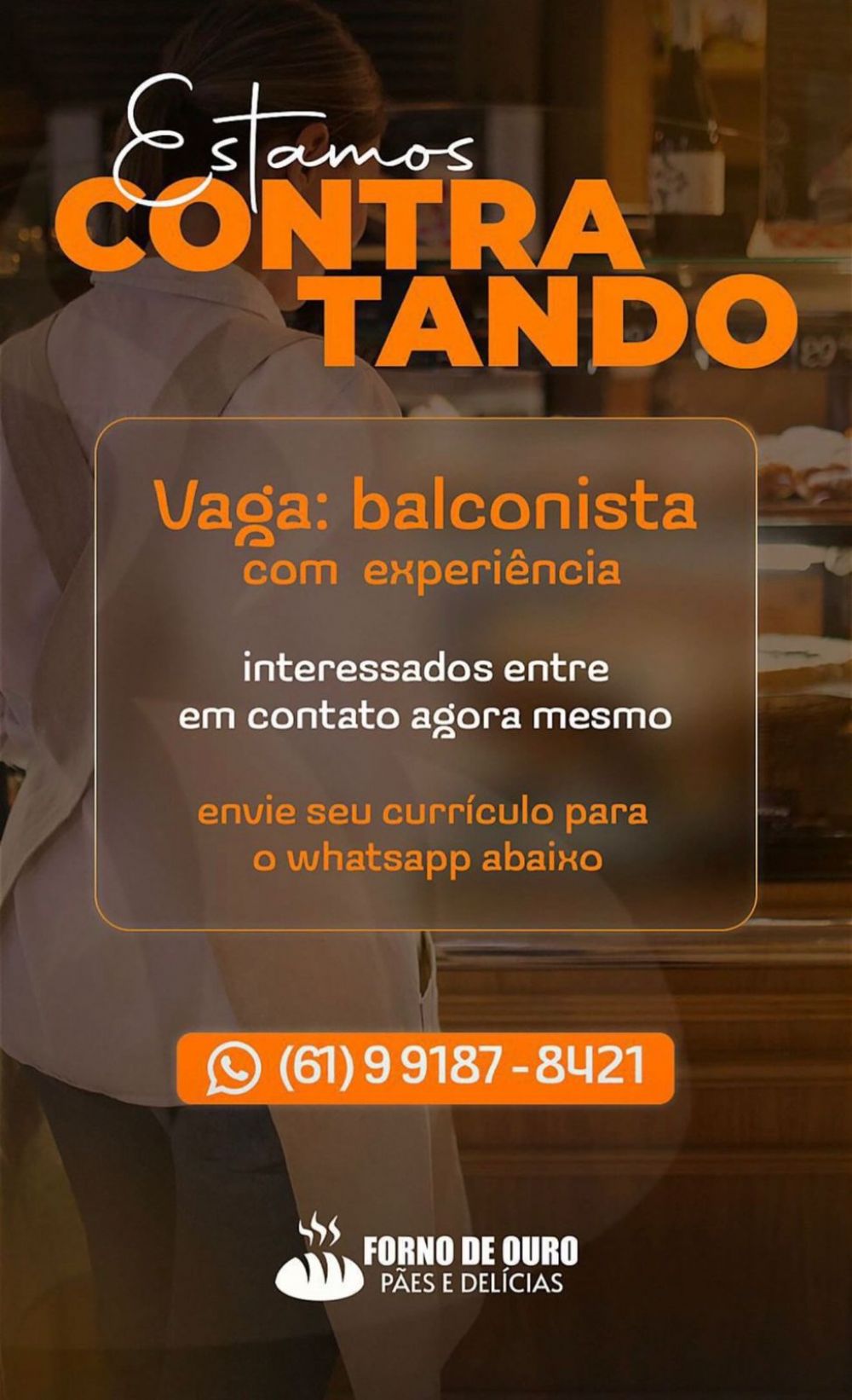 Panificadora Forno de Ouro contrata balconista no Novo Gama