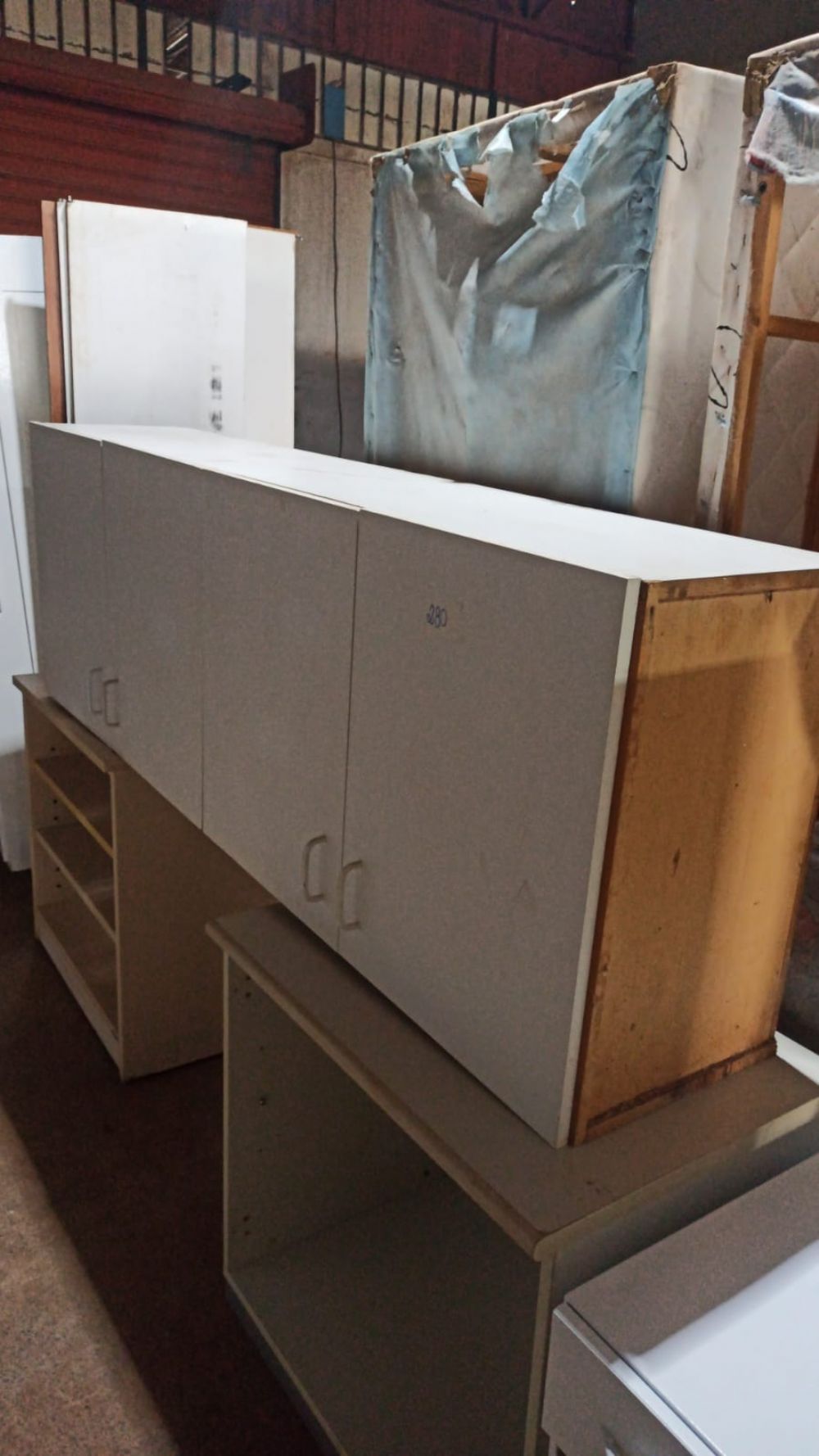Balcão de madeira branco com portas