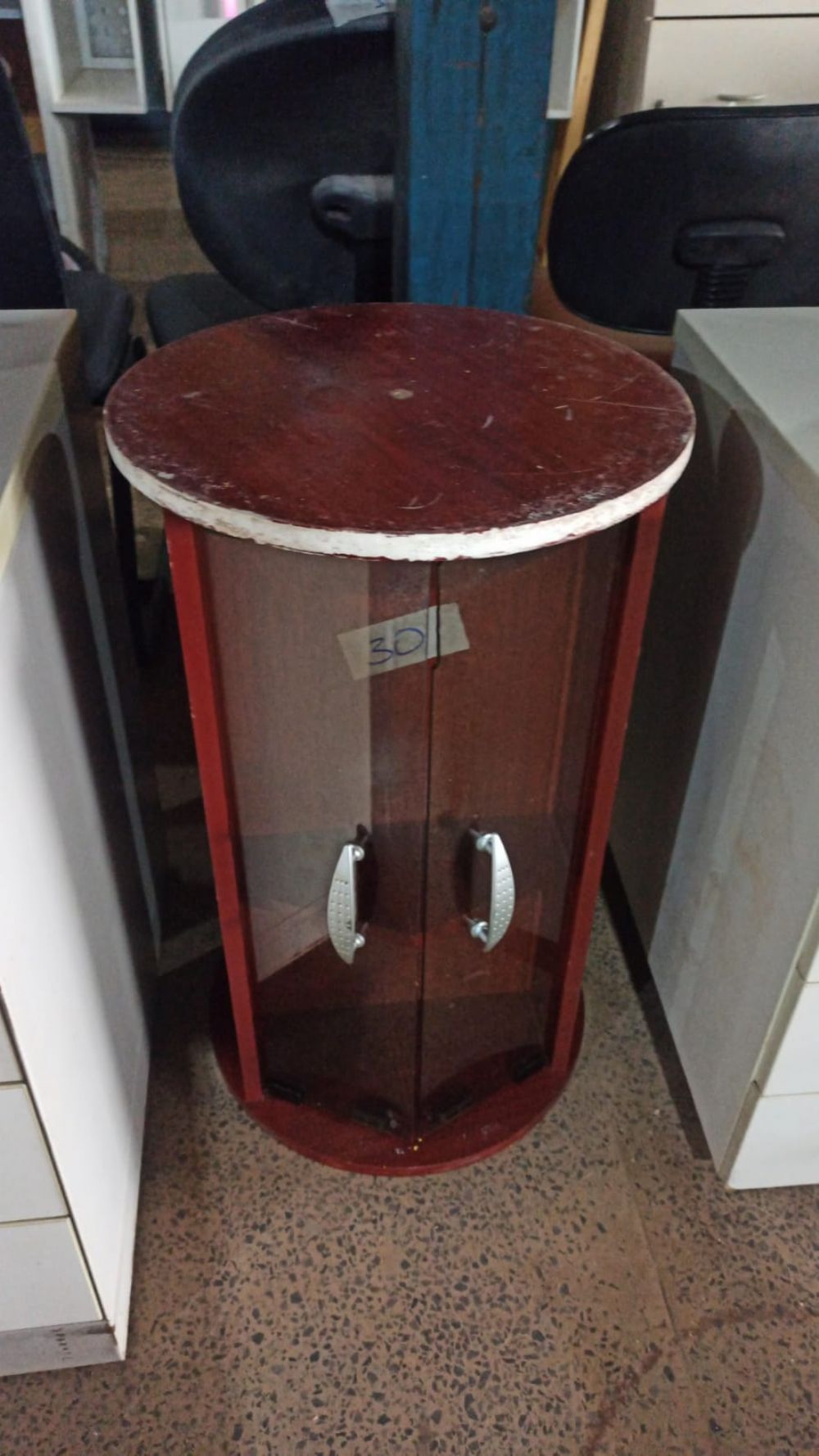Armário de madeira com portas de vidro