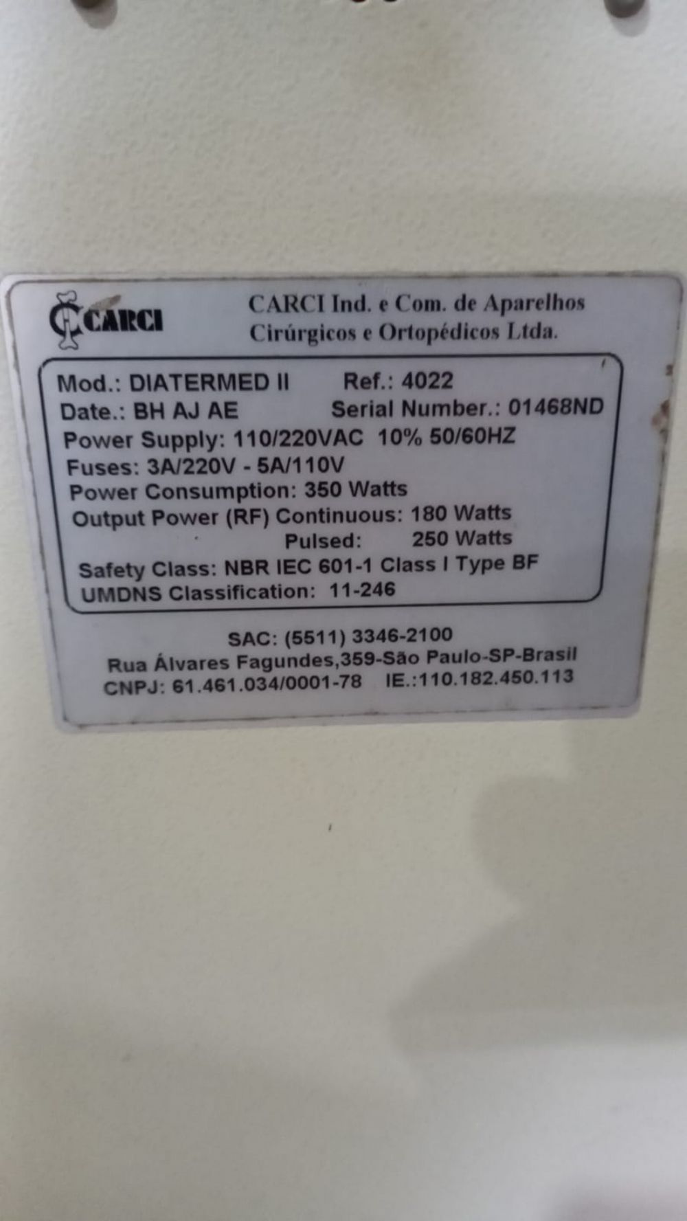Aparelho Ondas Curtas Diatermed Ii Placas Carci Fisioterapia 110/220VAC