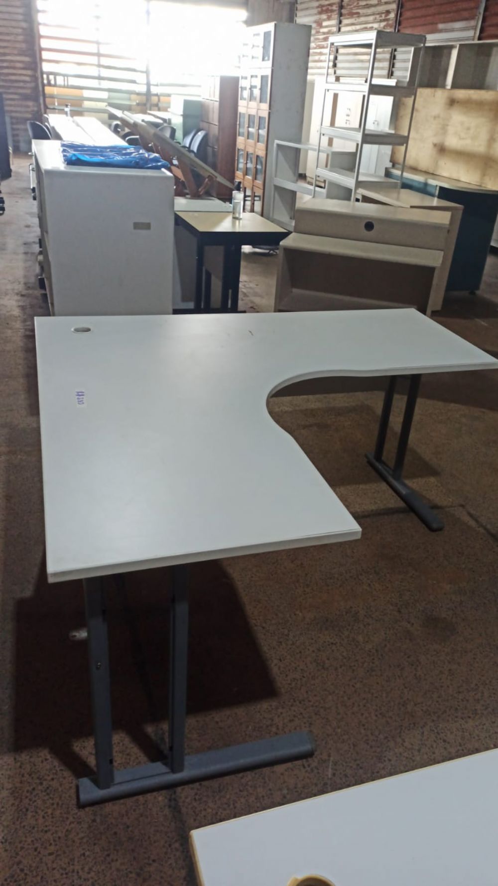 Mesa de podcast / mesa de reunião grande com passa-cabos