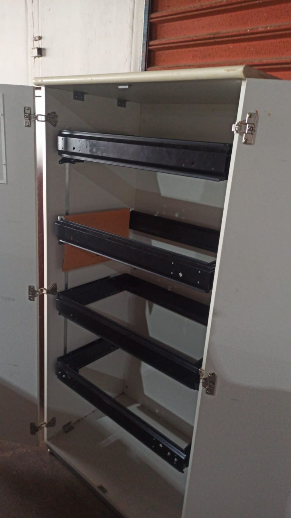 * Interior com estrutura metálica deslizante para suporte de pastas